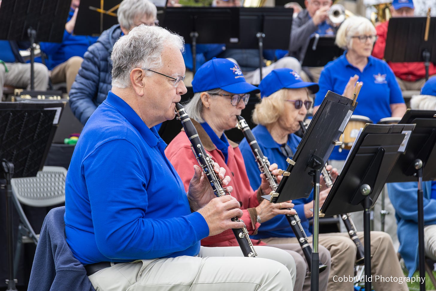 Tim King (left) Plays the Clarinet during the New Horizons Band’s performance during the Freedom Feastival celebration at Green Square Park on Friday. The New Horizons Band was the first of four musical acts to perform during the celebration.