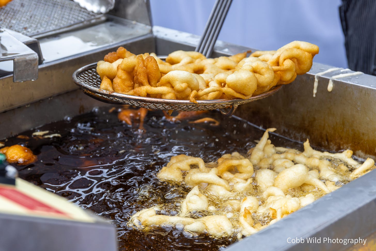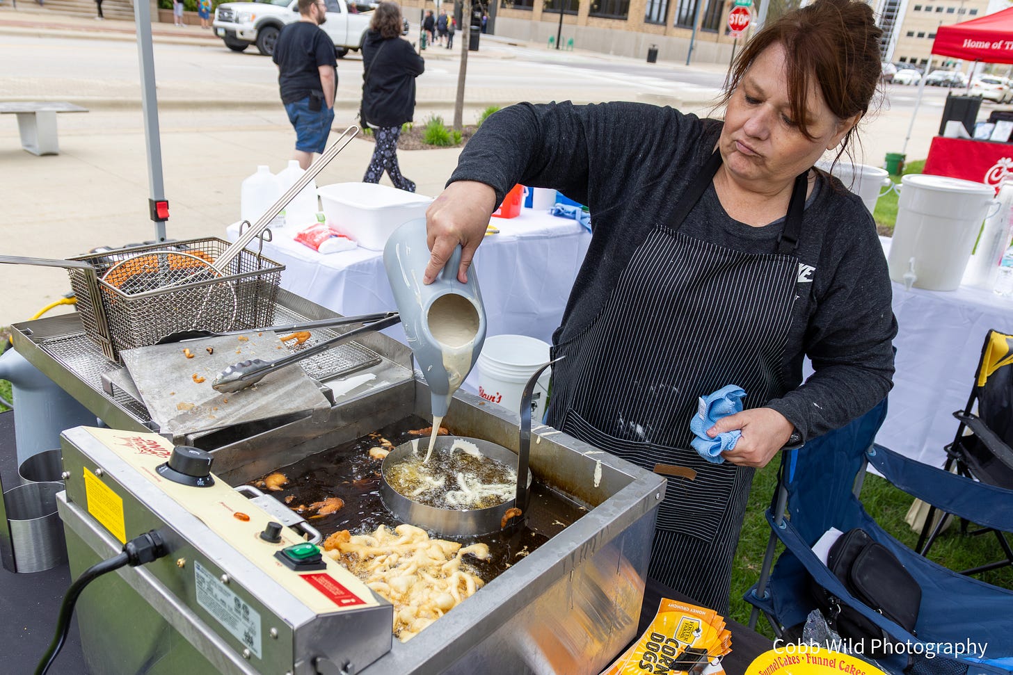 Funnel Cake from Fried Sweets and Treats being prepared during the Freedom Feastival on Friday May 2nd. Fried Sweets and Treats is a food stand based out of Marengo Iowa.