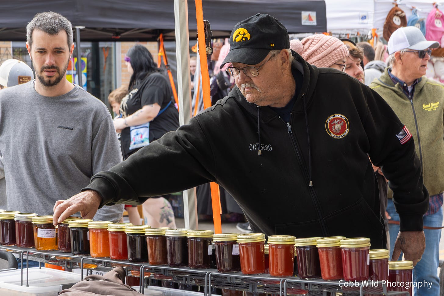 Duane Ortberg From Cedar Rapids takes a look at some of the jams for sale by one of the vendors at the Houby Days Festival on Saturday the 17th.