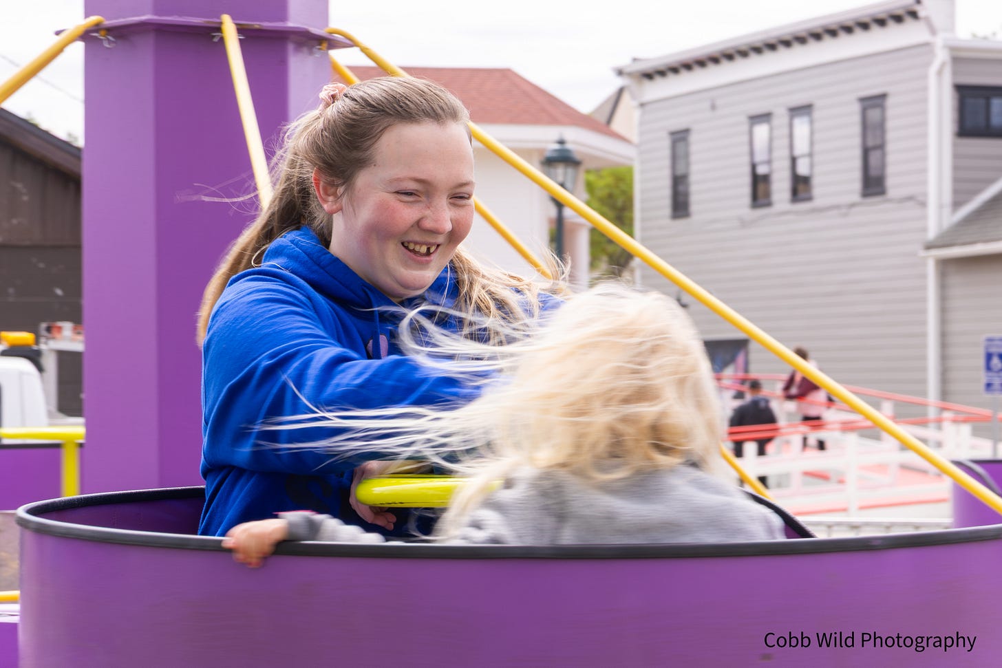 Kalynn Troupe and her daughter Willow Troupe ride the teacups provided by H&H Fun Rides at the Houby Days Festival. H&H Fun Rides is located in Cedar Rapids, and has been in operation since 2003.