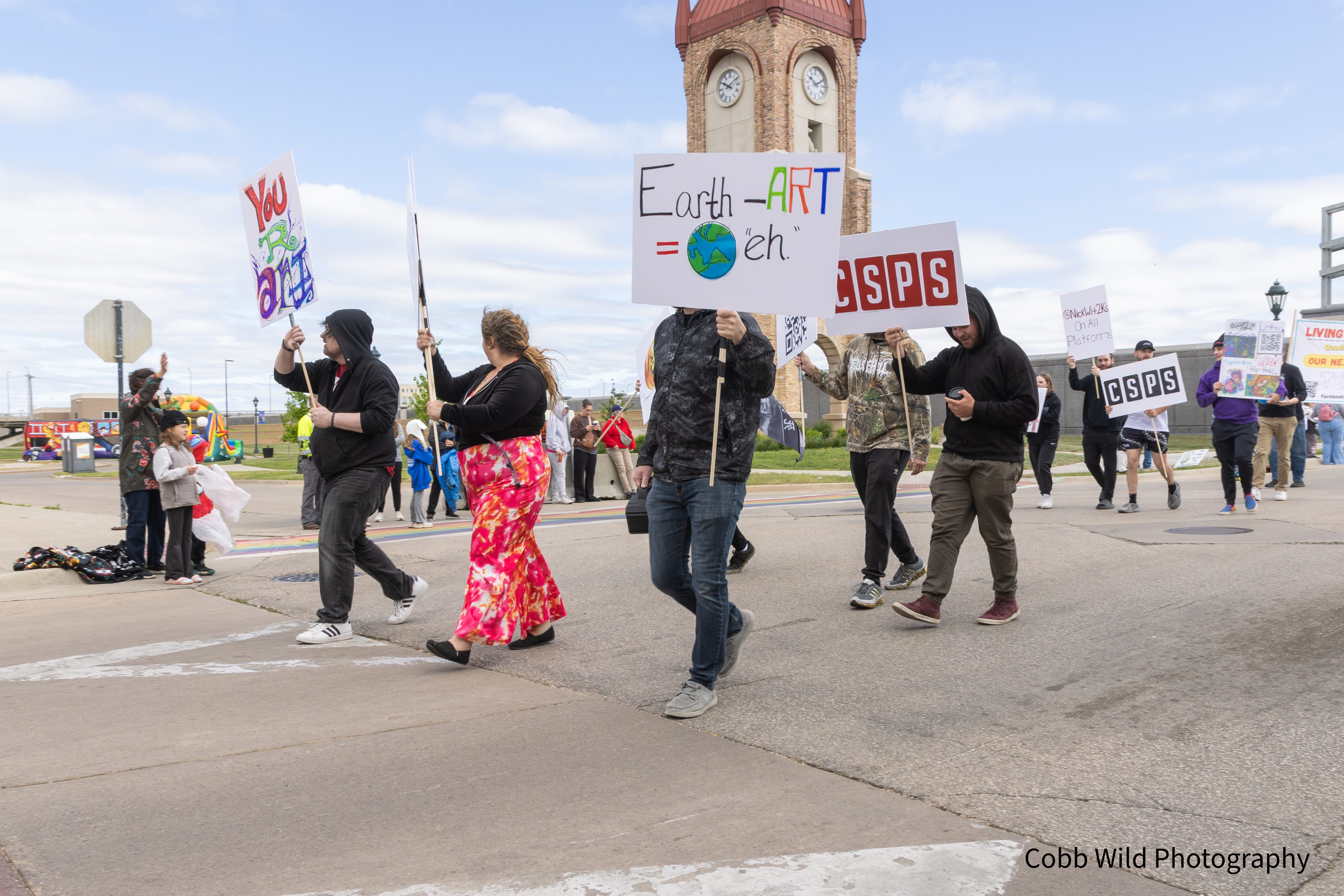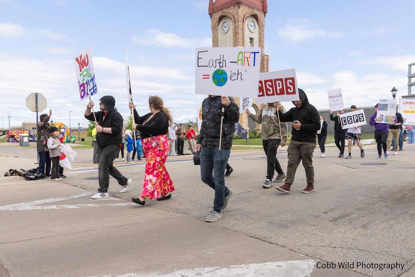 Representatives of CSPS (Czech and Slovak Prudential Society) march during the Houby Days Parade. CSPS began in the 1980’s as an independent performance art company helmed by Mel Adringa and F John Herbert. Since moving into the historic CSPS Hall in Cedar Rapids in 1991 they have hosted musicians such as John Fahey, Joan Baez and Odetta. They have also shown the gallery works of artists such as Yoko Ono, and Andres Serrano.