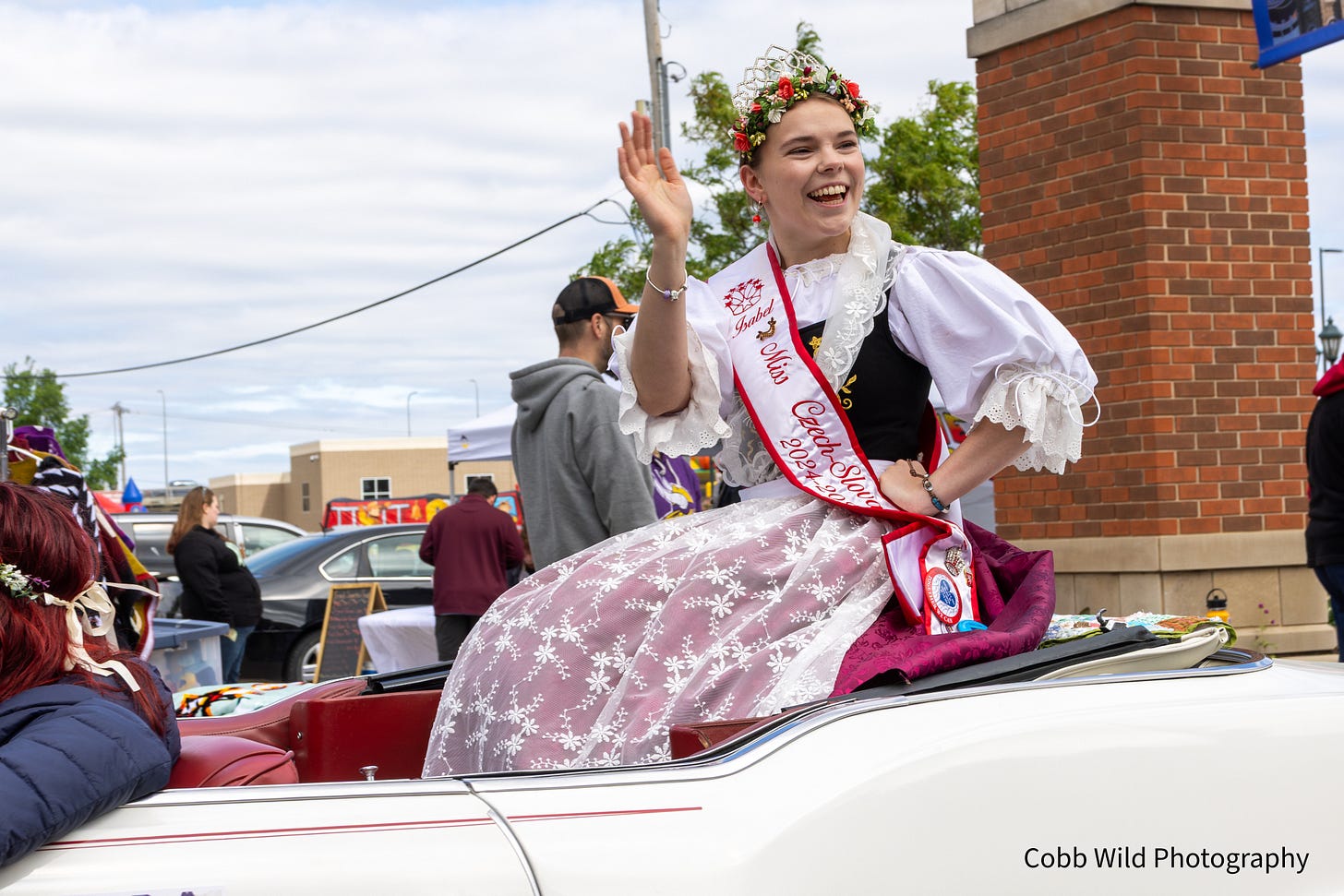 Isabel Sherman, Miss Czech-Slovak Iowa, waves to the crowd during the Houby Days Parade. As Miss Czech-Slovak Iowa Sherman gets to travel the country representing Iowa at various Czech-Slovak celebrations.
