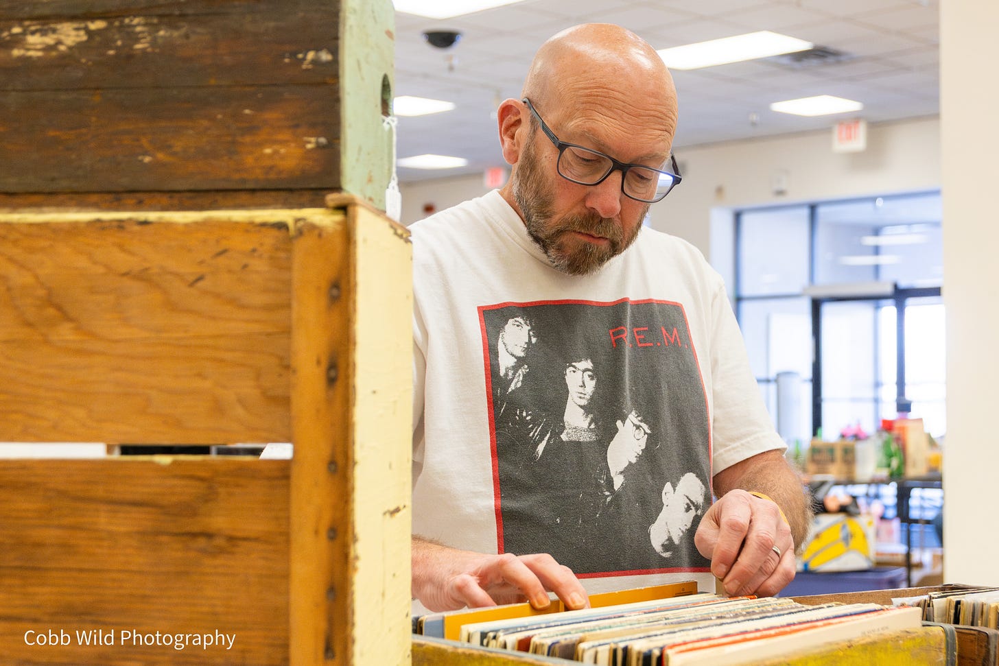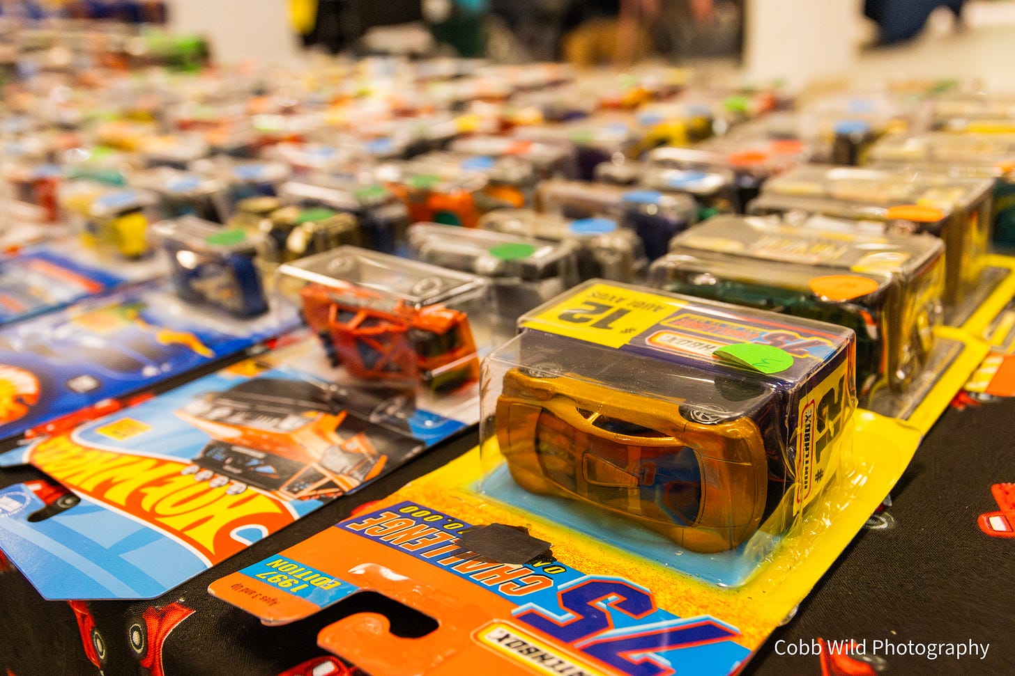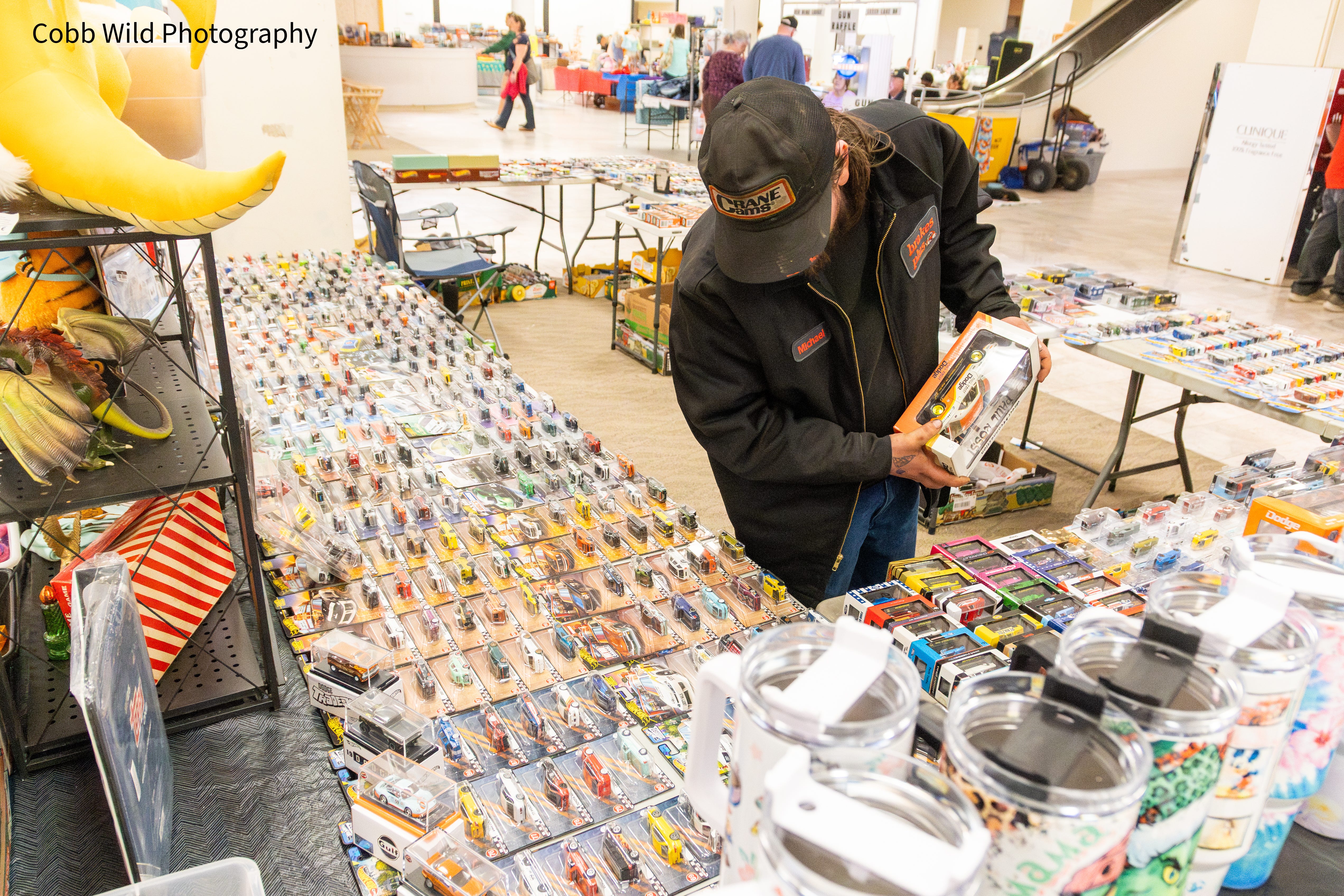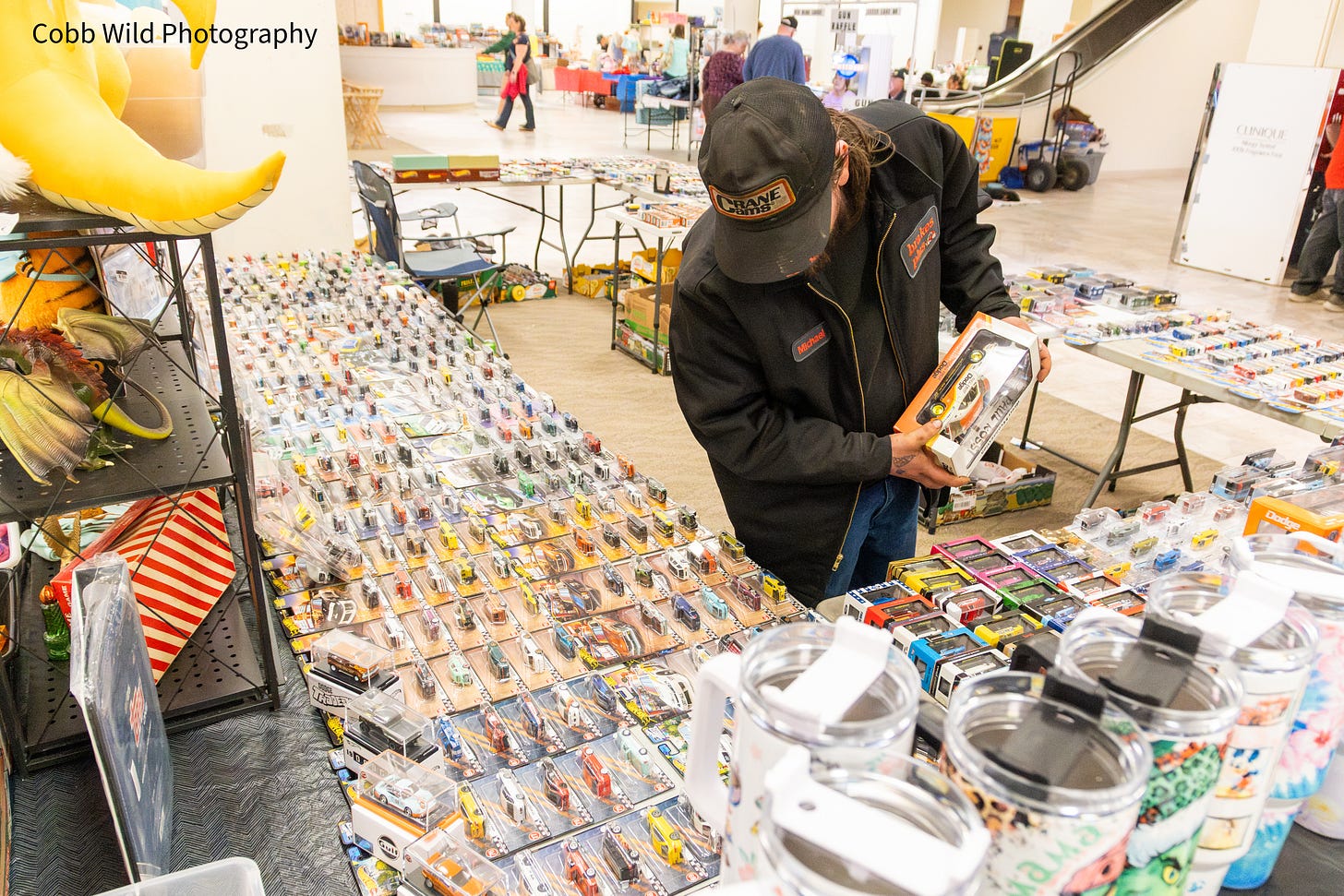 Mike Baker looks at some of the Hot Wheels available for sale by one of the vendors while attending the Wolf Den Flea Market with his friend Mike Baker on Sunday March 29th.