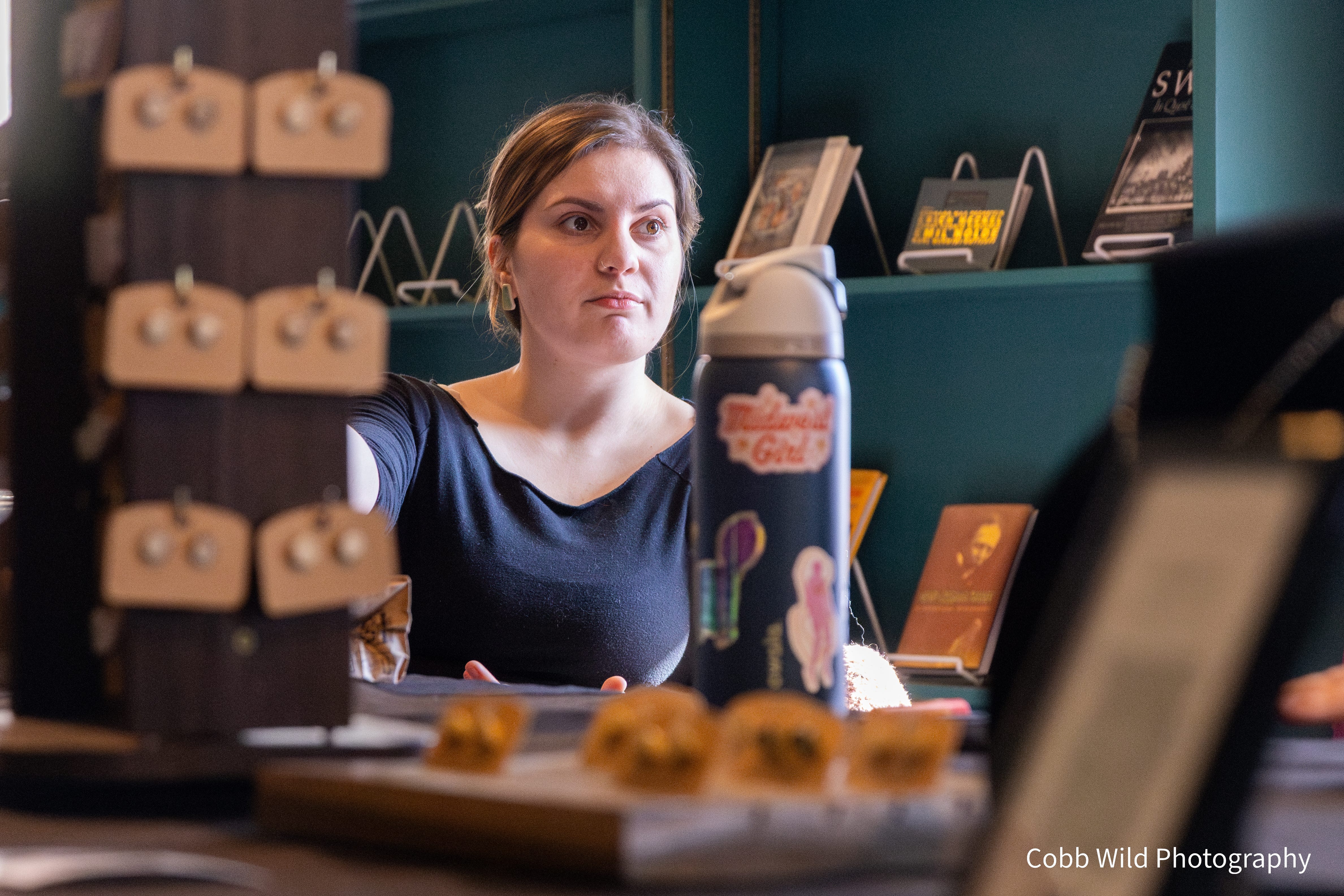 Mileah Mesch prepares to sell a couple of earrings to a customer while participating in the Trunk Show for the first time. Mesch has been in business for one year, and also works full time as a secretary for Robinson Construction.